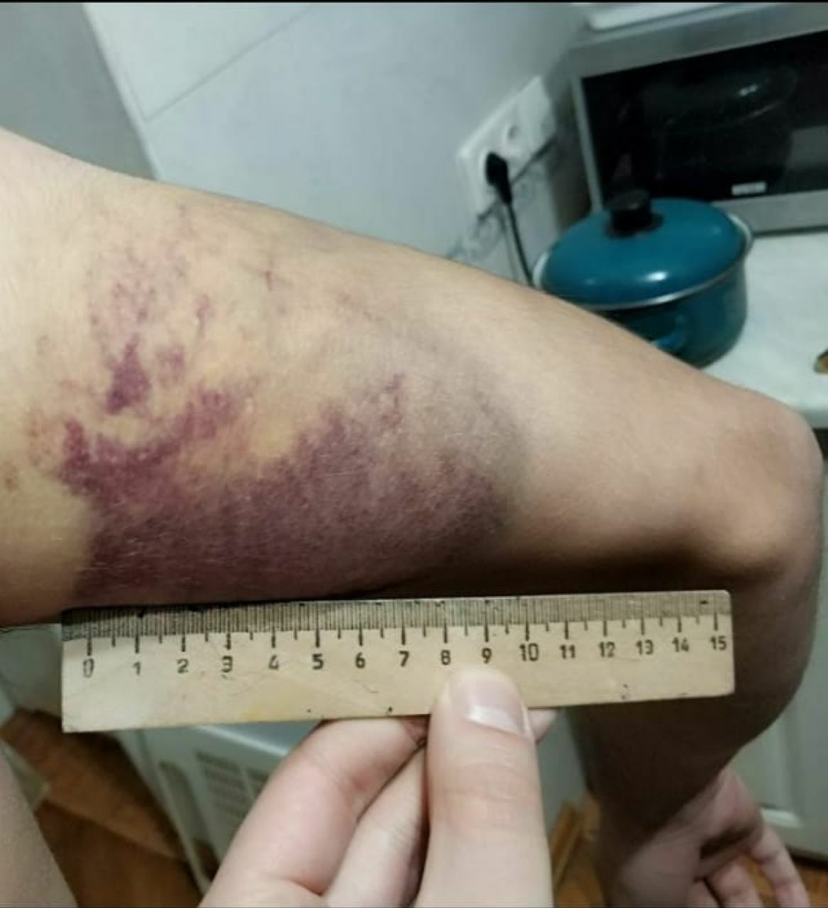 Затем полицейские потребовали, чтобы Дебишев выдал контакты местных наркопотребителей, предлагая «удивить новой информацией». Актер отказался называть какие-либо имена. Такой ответ оперативников не устроил: они повалили задержанного лицом на стол и принялись наносить удары по всему телу. В это время в кабинет зашли еще двое сотрудников МВД; одного из них звали Юсуф, имя другого Дебишев не знает. Избиение продолжилось — сначала на полу, затем у стены. «Был момент, когда Юсуф оперся рукой о плечо Зелимхана, встал на меня и начал прыгать обеими ногами на моей спине», — вспоминает Тимур. Впрочем, комплекцию Юсуфа он характеризует словом «мелкий»; по его впечатлениям, оперативник весил не больше 55 килограммов.