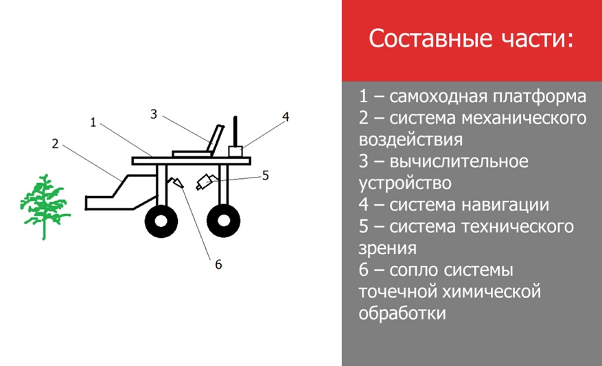«Применение робота позволит свести к минимуму участие человека, уменьшить в разы объемы использования химикатов и топлива, поможет увеличить урожайность», — отмечает руководитель проекта, доцент отделения автоматизации и робототехники Инженерной школы информационных технологий и робототехники ТПУ Александр Тырышкин.