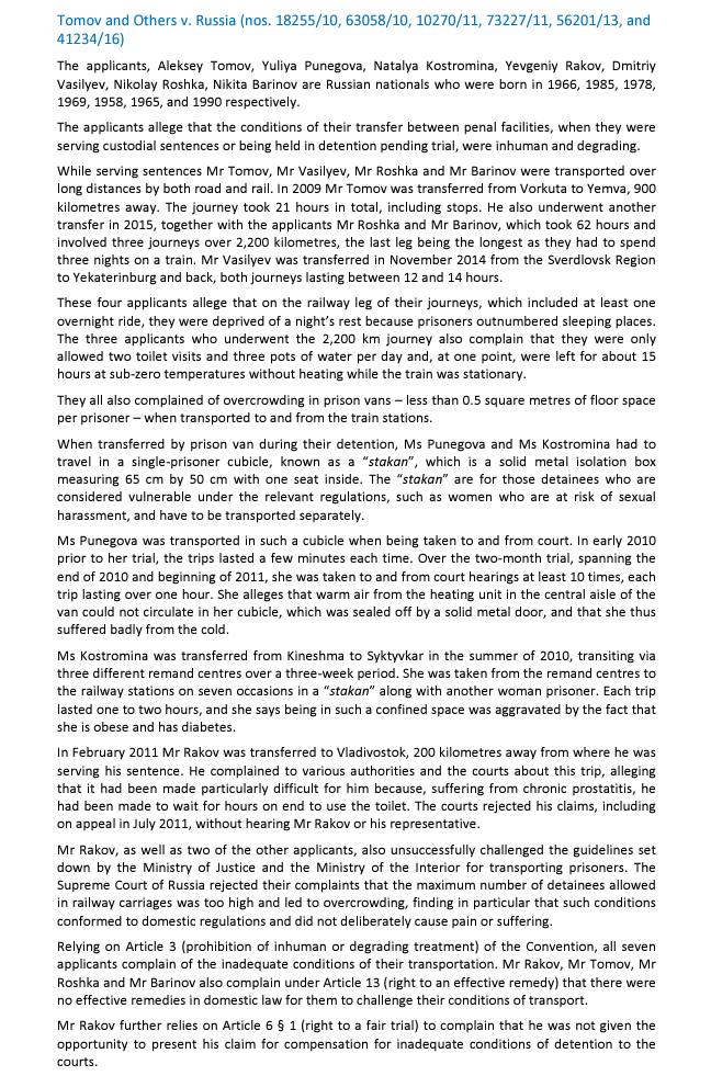С легкой руки Европейского Суда по правам человека, который 9 апреля 2019 года обнародует свое постановление по проблеме российских тюремных перевозок (шести из семи заявителей в Страсбурге помогал Фонд «Общественный вердикт»), английский язык сегодня пополнился словом «stakan».