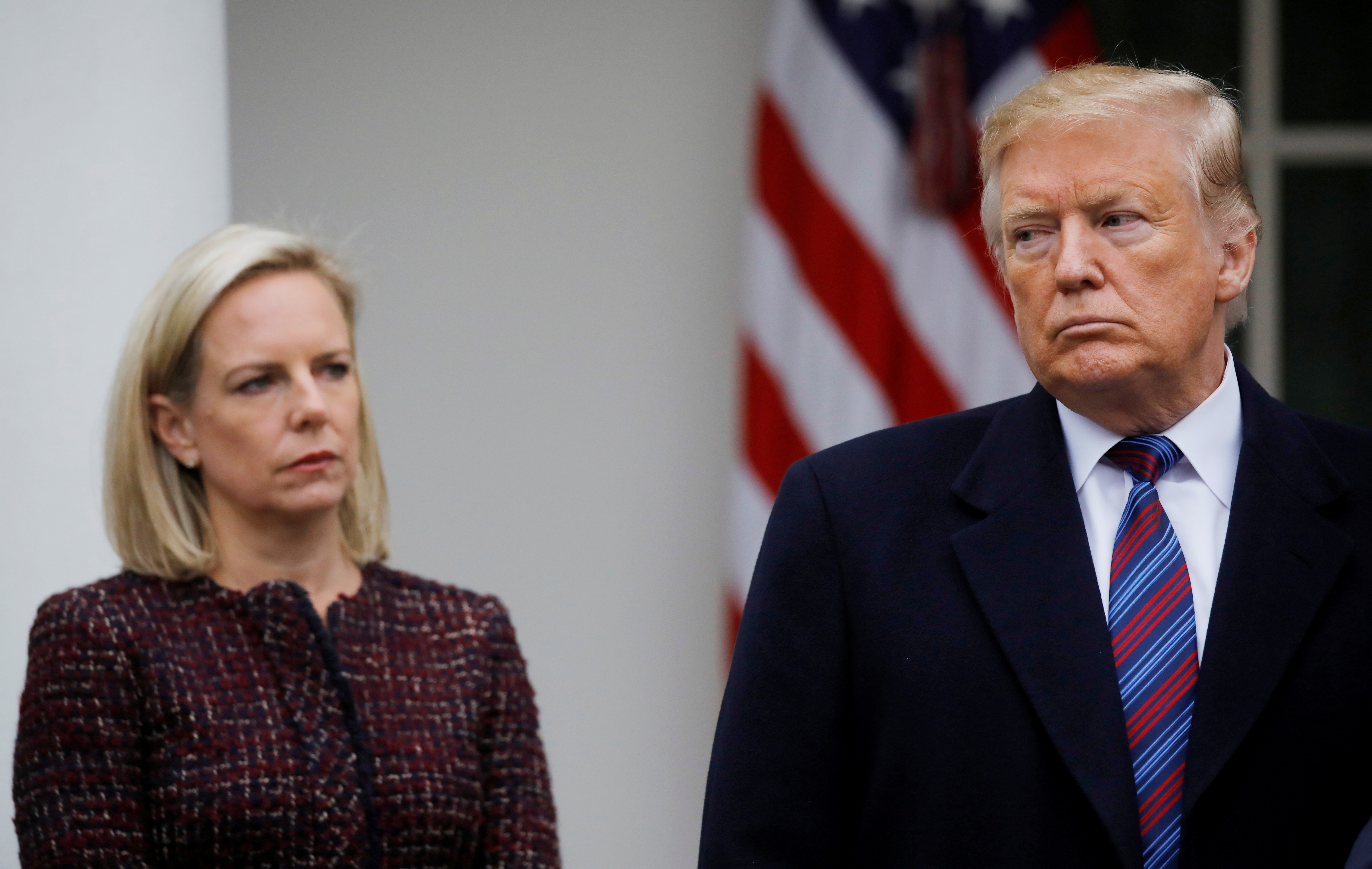 Трамп в твиттере поблагодарил Кирстен Нильсен за службу и там же объявил о том, что обязанности министра будет исполнять глава Таможенной и пограничной службы США Кевин Макалинан.