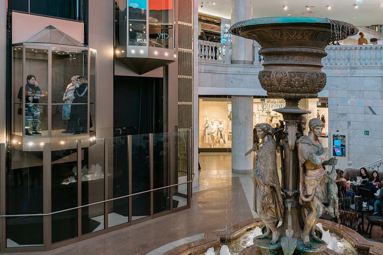 Как только посетитель входит в молл, он сразу оказывается перед длинными залами, словно во дворце, его увлекает пространство вытянутого зала и круговорот этажей. Мраморные лестницы, позолоченный фонтан, лепнина и украшения — всё это создаёт город как лудический центр: игровое пространство, место получения удовольствия. Молл воспроизводит урбанистическую среду, становясь волшебным городом внутри города, он предоставляет упорядоченное пространство для социальной коммуникации. Иначе говоря, молл создаёт иллюзию городской культуры.