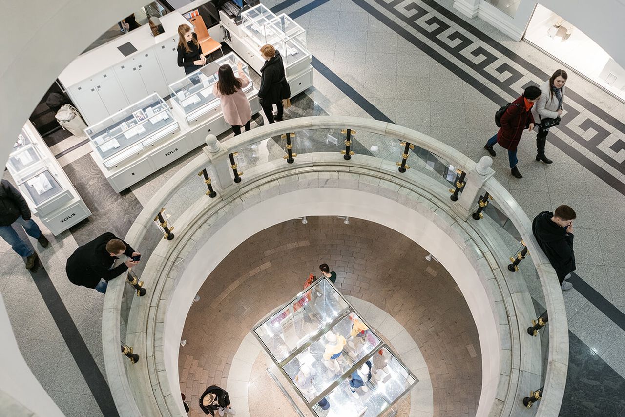 Говоря о торговых центрах в центре города, неизбежно вспоминаем пассажи — центры торговли предметами роскоши, как их называл Вальтер Беньямин. Торговые пассажи начала XX века стали вместилищами поклонения товарному фетишизму и превратили потребление в индустрию развлечений. Торговые галереи были своего рода выставками, набором артефактов, а потребление стало носить визуальный аспект: потреблять ― значит видеть, рассматривать, поглощать. Визуальное потребление воплощается в фигуре фланёра — особом типе горожанина, наблюдающего за городской жизнью, прогуливающегося, наслаждающегося.