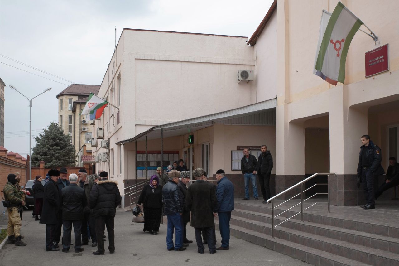 Владимир Севриновский Двор Магасского районного суда, куда привезли активистов, задержанных 3 апреля
