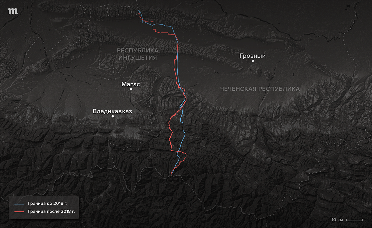Новая граница между республиками врезается глубоко внутрь территории Ингушетии
