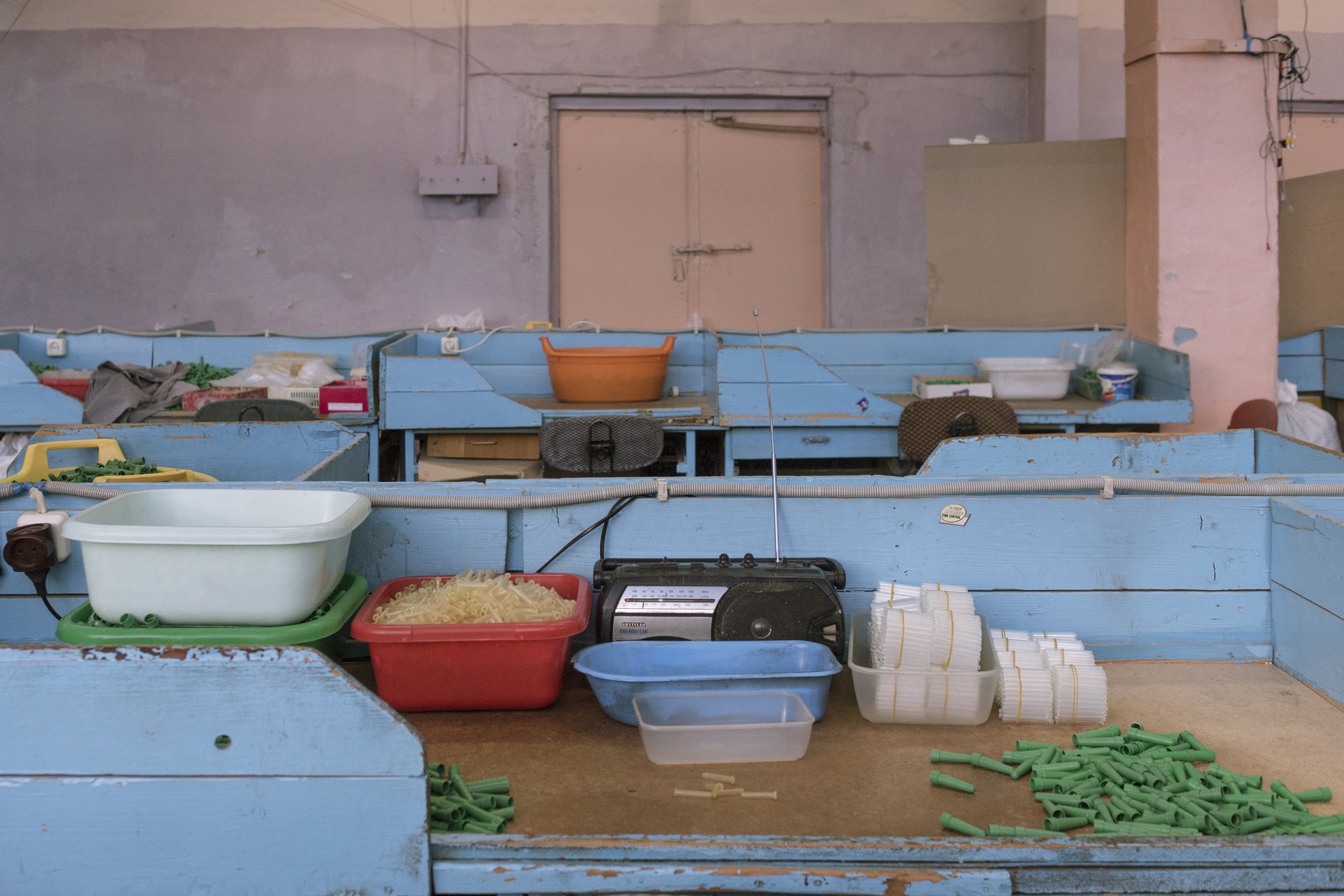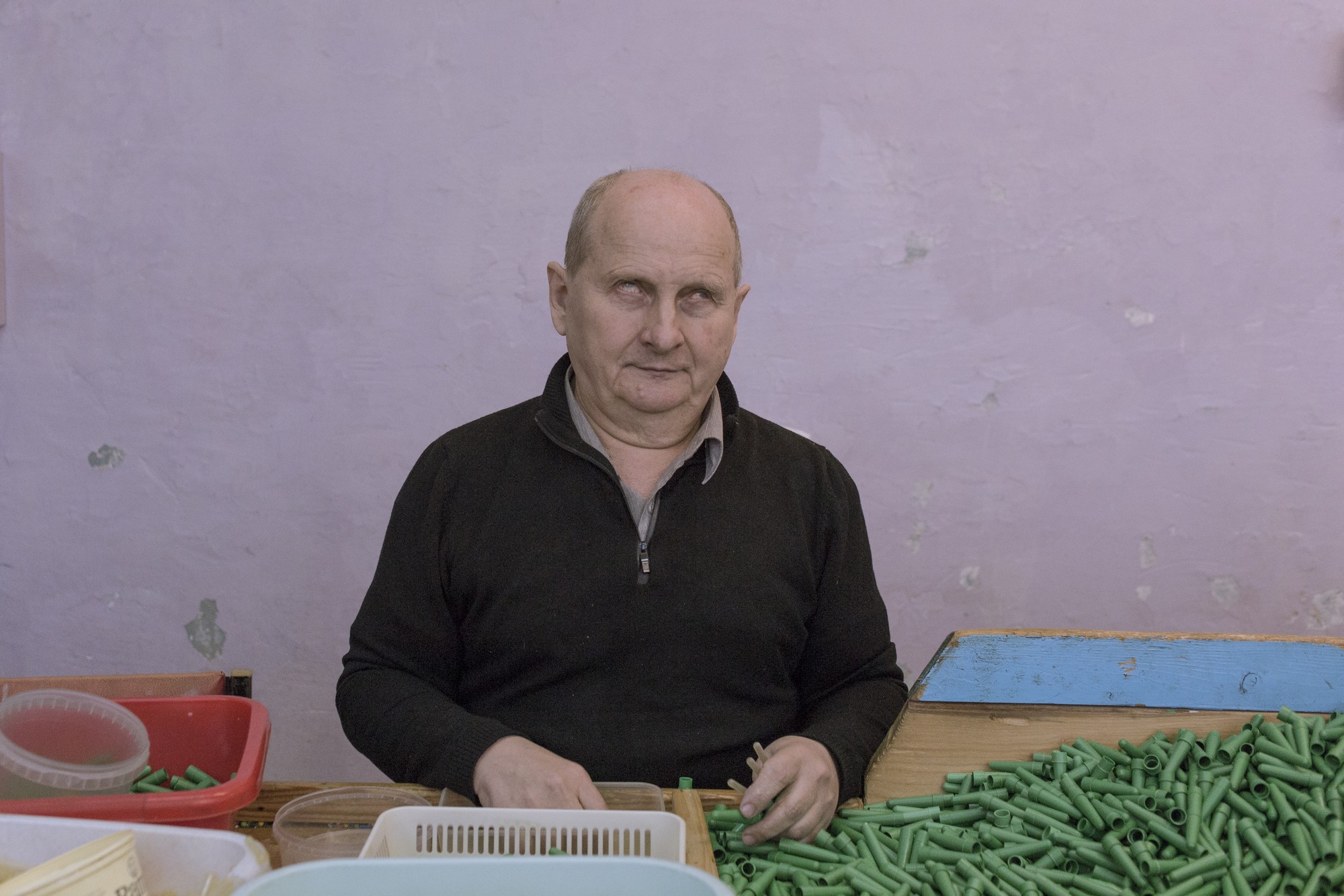 На производстве проложены резиновые дорожки — с первого этажа здания до цеха на третьем этаже. Они служат ориентиром для незрячих
