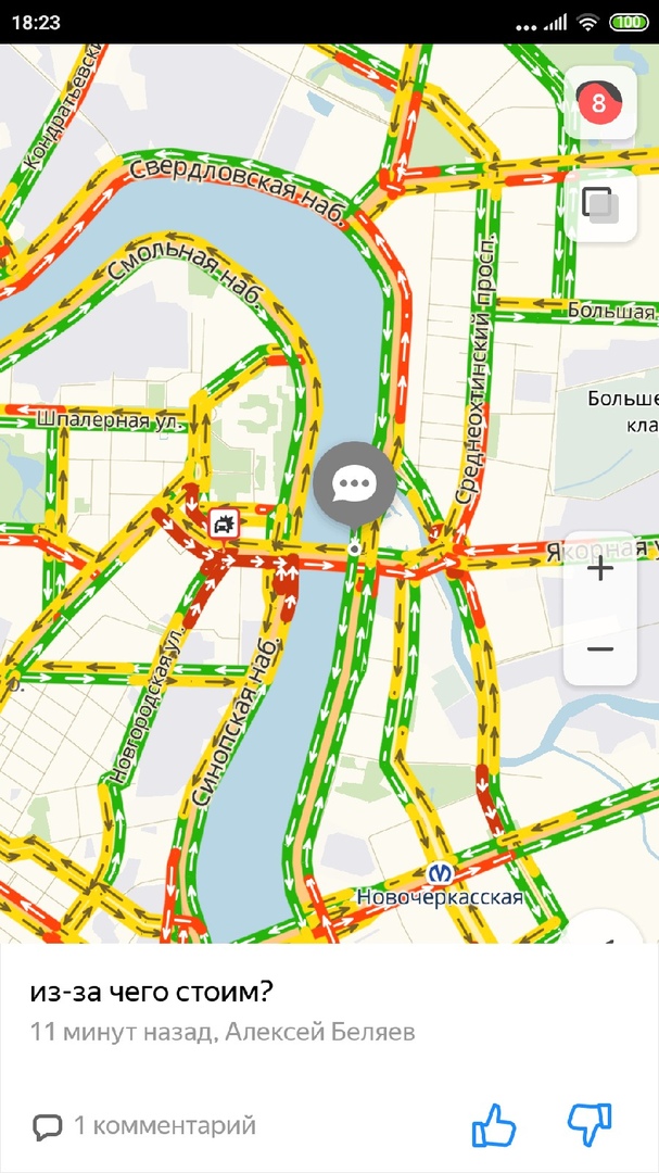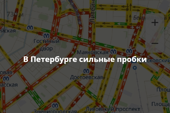 Вечером 10 апреля в Петербурге образовались сильные пробки, которые «Яндекс» оценивает в 8 баллов.