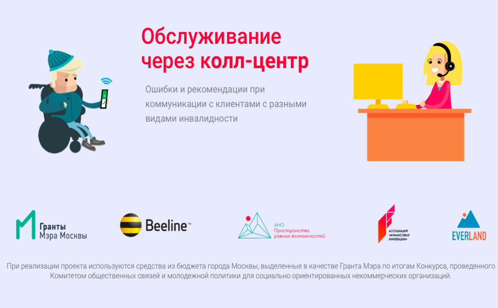 Создавать скрипты помогали люди передвигающиеся на колясках, с проблемами слуха, речи, зрения. Поэтому в основе рекомендаций — принципы универсального дизайна и алгоритмы обслуживания клиентов с разными видами инвалидности. Оценивали скрипты и представители бизнеса, а партнерами проекта стали Ассоциация «Финансовые инновации» и компания «Билайн».