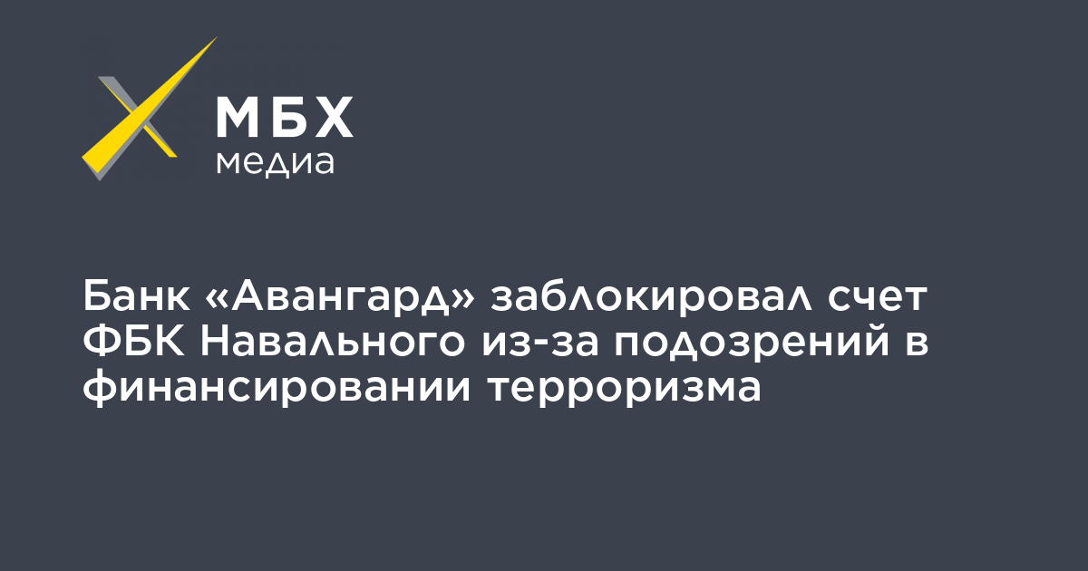 Банк «Авангард» заблокировал счет Фонда борьбы с коррупцией (ФБК) Алексея Навального из-за подозрений в финансировании терроризма, об этом «МБХ медиа» сообщил менеджер проектов фонда Леонид Волков.