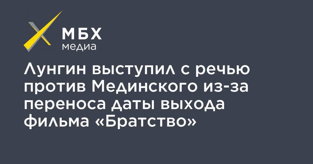 Режиссер Павел Лунгин раскритиковал чиновников за подход к работе после переноса даты выхода его фильма о войне в Афганистане «Братство». Речь режиссера, которая, в частности, была обращена к министру культуры Владимиру Мединскому, опубликовал в твиттере главред «Независимой газеты» Константин Ремчуков.
