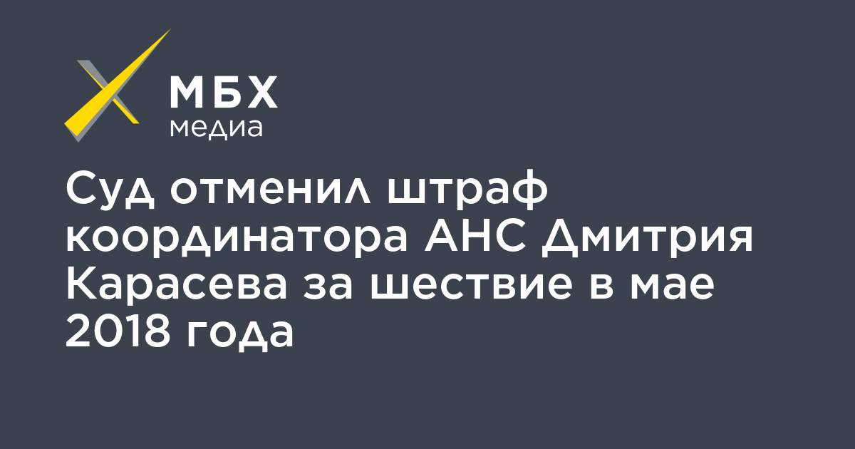Суд отменил штраф координатора АНС Дмитрия Карасева за шествие в мае 2018 года
