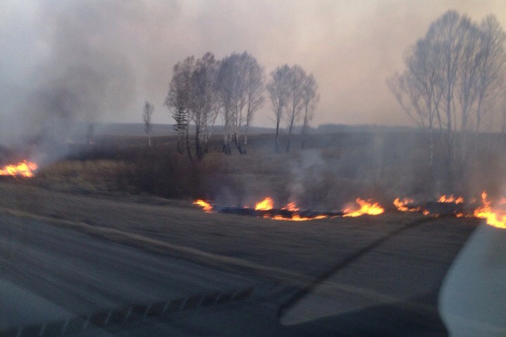 Тысячи гектаров полей полыхают вдоль трассы в Кузбассе