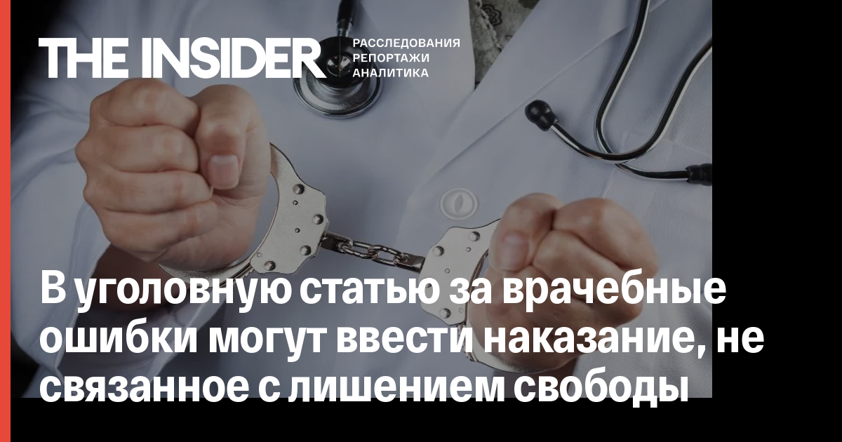 Рабочая группа, состоящая из представителей Следственного комитета и Национальной медицинской палаты, проработала вопрос о введении в новую уголовную статью для врачей наказания, не связанного с лишением свободы. По мнению Национальной медицинской палаты, «за неумышленные осложнения врач не должен сидеть в тюрьме». The Insider попросил юриста «Зоны права» Анастасию Коптееву оценить эту инициативу.