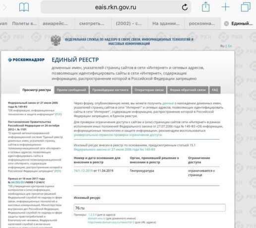 Согласно реестру на сайте Роскомнадзора, ссылку на эту новость запретили на основании решения Генпрокуратуры от 11 апреля.
