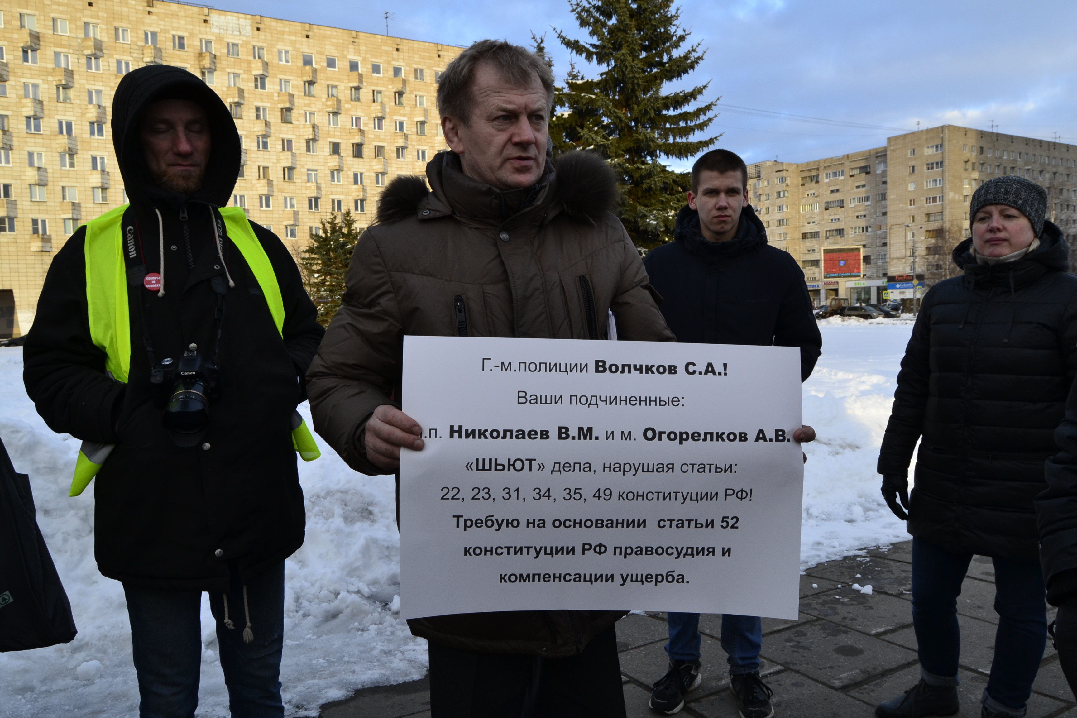 В руках у него белый сверток, но разворачивать его на площади нельзя, полиция может расценить такие действия как массовую акцию. Юрий показывает, что написано на плакате, и направляется к зданию УМВД, чтобы устроить там одиночный пикет против неправомерных действий полиции. Он считает, что сотрудники правоохранительных органов, забыв статьи Конституции, шьют сфабрикованные дела на активистов.
