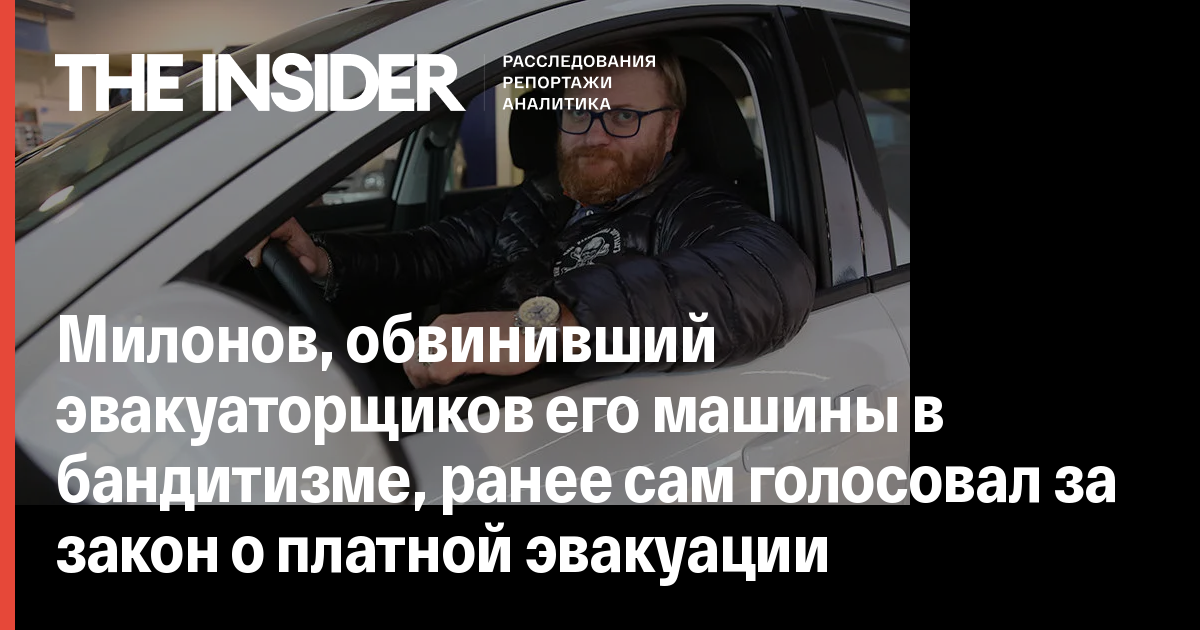 Милонов, обвинивший эвакуаторщиков его машины в бандитизме, ранее сам голосовал за закон о платной эвакуации