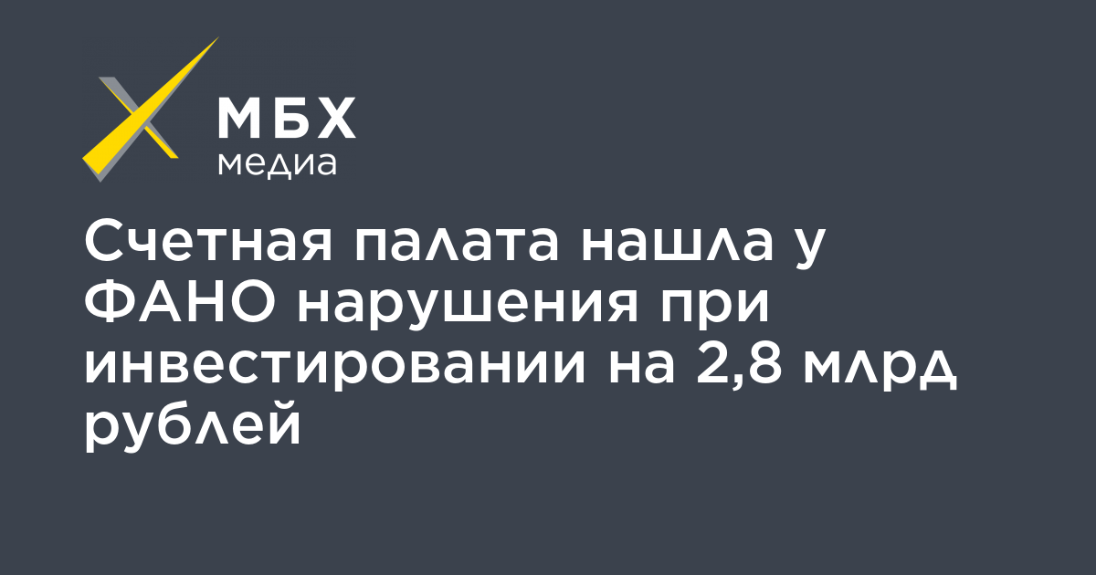 Счетная палата нашла у ФАНО нарушения при инвестировании на 2,8 млрд рублей
