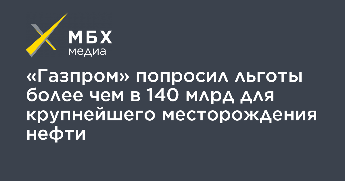 «Газпром» попросил льготы более чем в 140 млрд для крупнейшего месторождения нефти