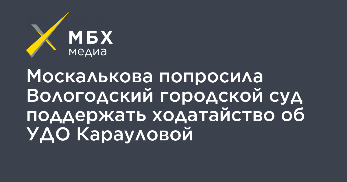 Уполномоченный по правам человека Татьяна Москалькова обратилась к председателю Вологодского городского суда Ольге Федосеевой с просьбой поддержать ходатайство об УДО Александры Ивановой (Варвары Карауловой), которую осудили на четыре с половиной года за попытку вступить в ИГИЛ. Об этом корреспонденту «МБХ медиа» сообщил уполномоченный по правам человека в Вологодской области Олег Димони со ссылкой на письмо Москальковой.