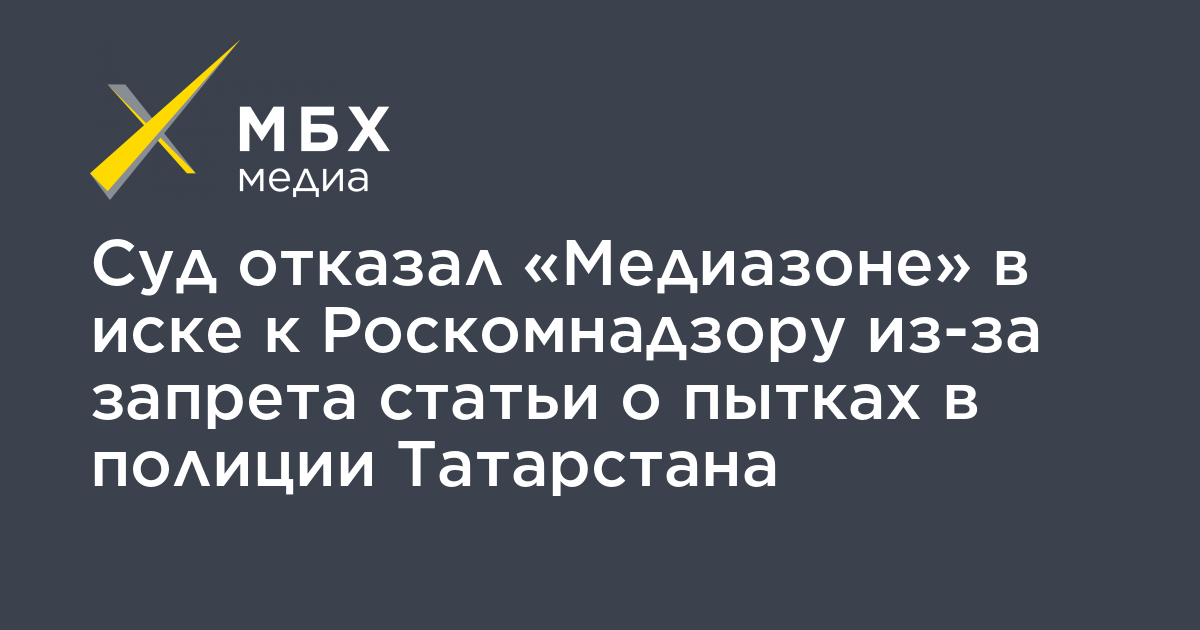 Таганский суд Москвы отказал редакции «Медиазоны» в иске к Роскомнадзору из-за запрета фрагментов публикации о пытках в полиции Татарстана. Об этом «МБХ медиа» сообщил юрист Севан Авалян, представляющий интересы издания по инициативе правозащитной группы «Агора».