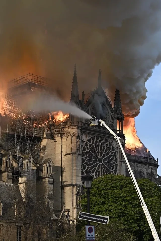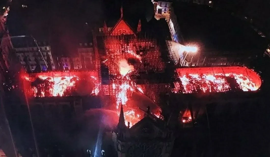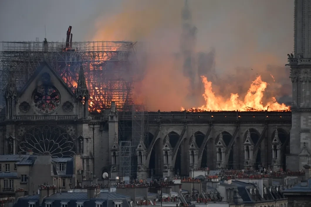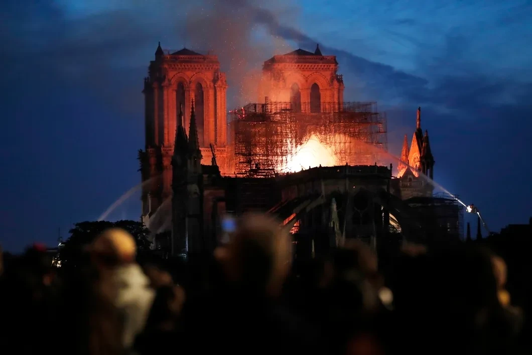 Пожар практически уничтожил своды здания собора Парижской Богоматери. На глазах у миллионов очевидцев бедствия шпиль собора рухнул, а следом обвалилась и крыша.