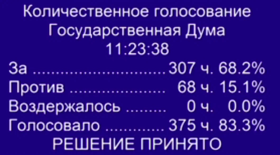 За принятие документа проголосовали 307 депутатов, против — 68.