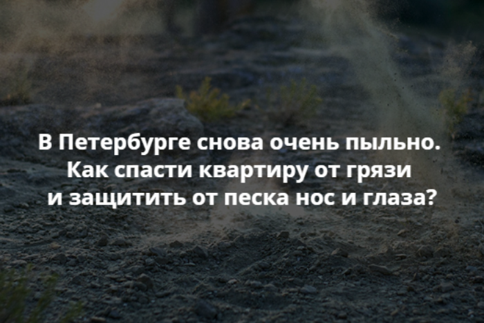 продолжают писать, что в городе тяжело дышать. Откуда в Петербурге столько пыли, можно ли защитить нос и глаза от бурь и как убираться в квартире, чтобы песок с улицы не оседал на всех поверхностях?