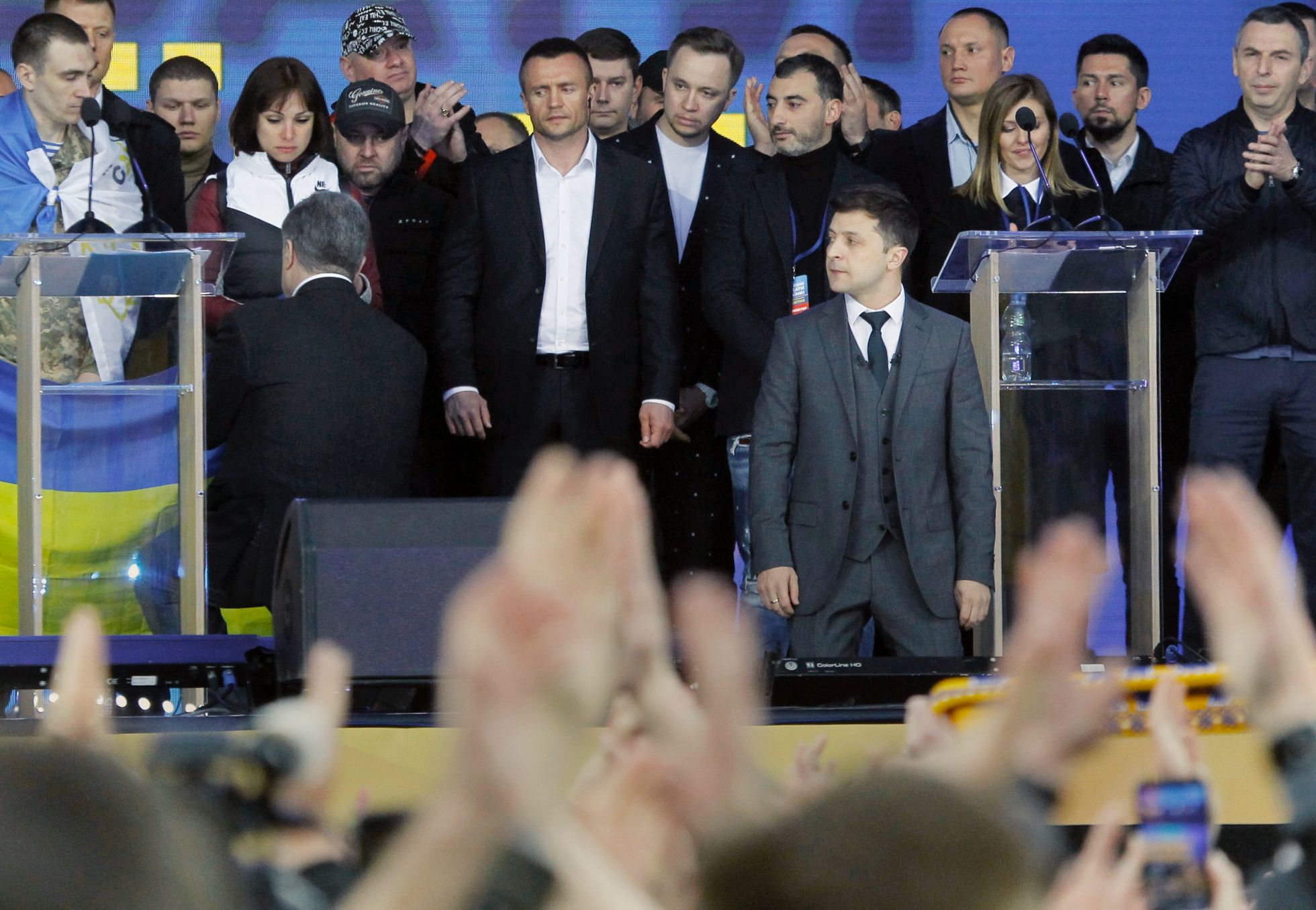 Кандидаты в президенты Украины встали на колени на дебатах. Фотография