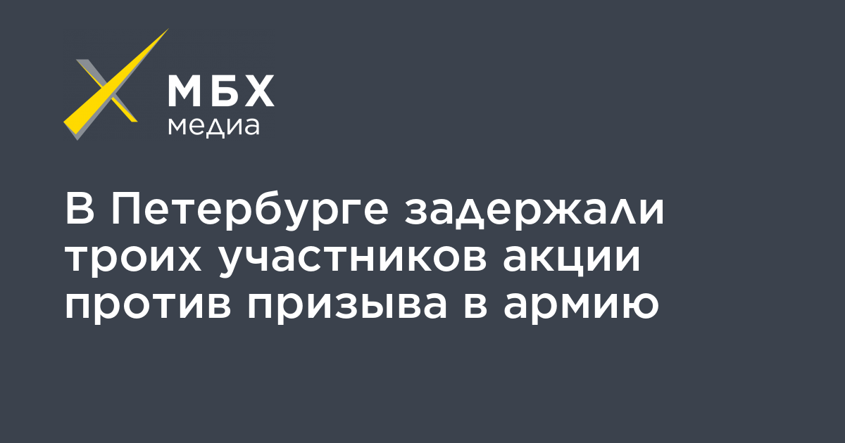 В Санкт-Петербурге полиция задержала троих участников движения «Весна», которые провели акцию против призыва в армию. Об этом сообщает корреспондент «Северо-Запад. МБХ Медиа».