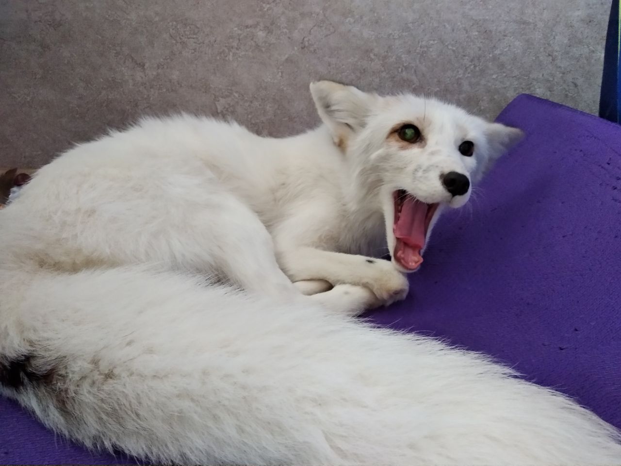 Сегодня лиса Катюша активна и жизнерадостна. Аккуратно покусывает свою хозяйку за руку и подставляет мордочку – просит, чтобы погладили. Глядя на нее сейчас, невозможно представить, что несколько месяцев назад животное буквально погибало в холодном вольере, уши были облеплены паразитами, на передней лапе кровоточила открытая рана. Екатерина увезла лису в клинику, ветеринары диагностировали у нее перелом челюсти, отсутствие нескольких зубов, почечную недостаточность, начальную стадию катаракты, аллергию и облысение. Часть лапки из-за сильного нагноения пришлось ампутировать.