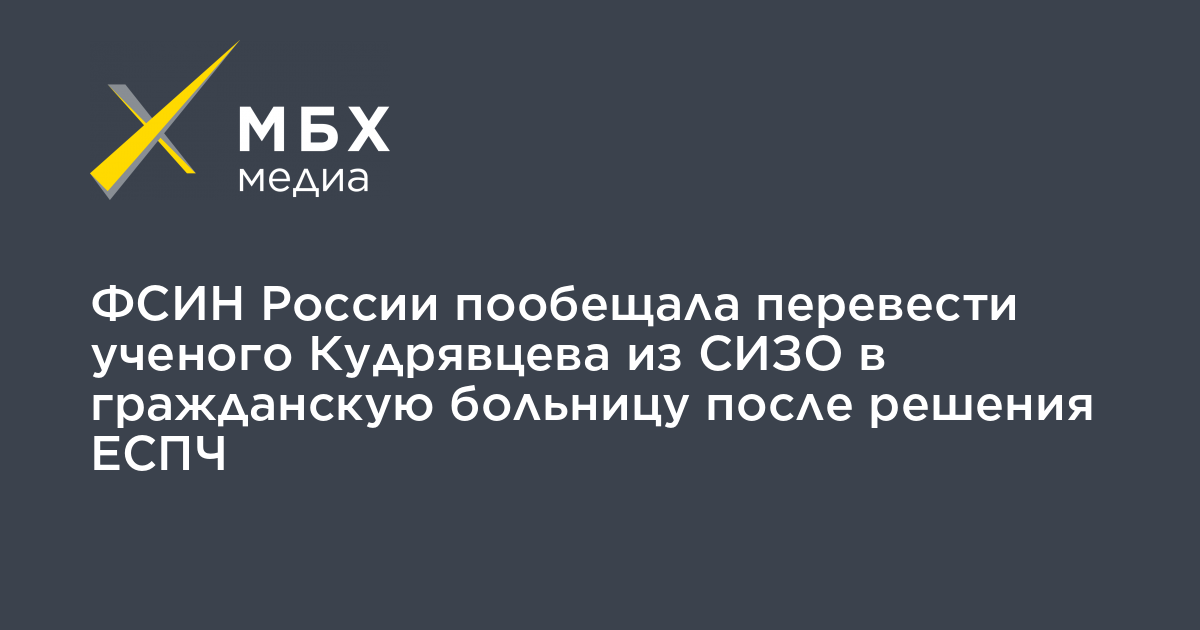 ФСИН России пообещала перевести ученого Кудрявцева из СИЗО в гражданскую больницу после решения ЕСПЧ