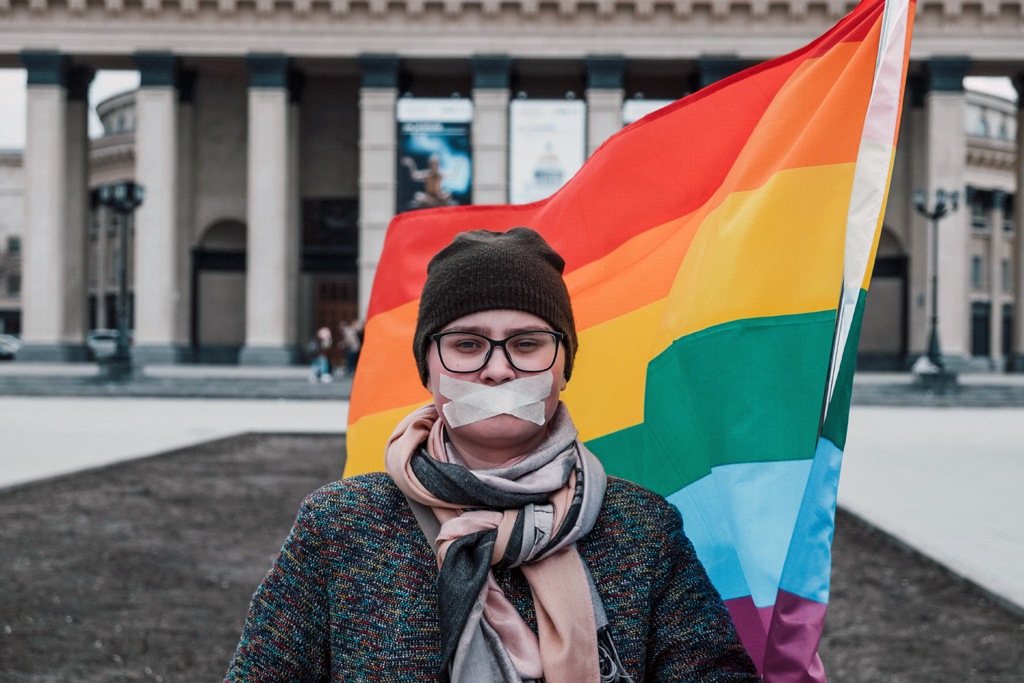 Новосибирцы провели флешмоб против замалчивания насилия в отношении ЛГБТ-людей. Они вышли на улицу с заклеенными ртами.