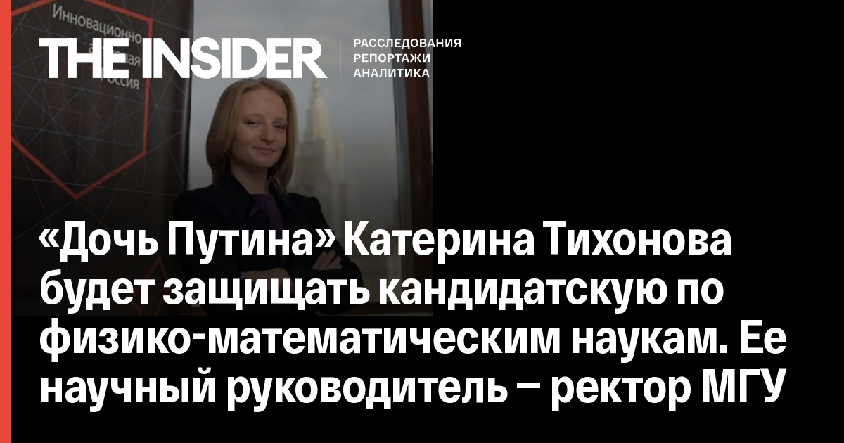 «Дочь Путина» Катерина Тихонова будет защищать кандидатскую по физико-математическим наукам. Ее научный руководитель — ректор МГУ