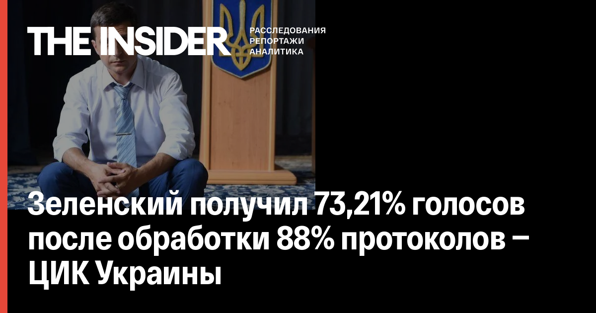 На выборах президента Украины по итогам обработки более 88% протоколов кандидат в президенты Владимир Зеленский набрал 73,21% голосов. За него проголосовали более 12 млн избирателей, следует из данных Центризбиркома Украины.