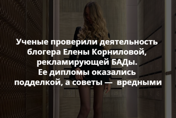 Комиссия РАН по противодействию фальсификации научных исследований проверила деятельность инстаграм-блогера Елены Корниловой, на которую подписано 250 тысяч человек и которая дает советы о здоровье. Ученые пришли к выводу, что ее дипломы — подделка, а советы могут быть вредными. Об этом сообщил член комиссии Петр Талантов.