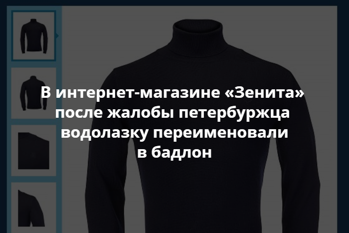 «Зенит» переименовал водолазку в бадлон на своем сайте