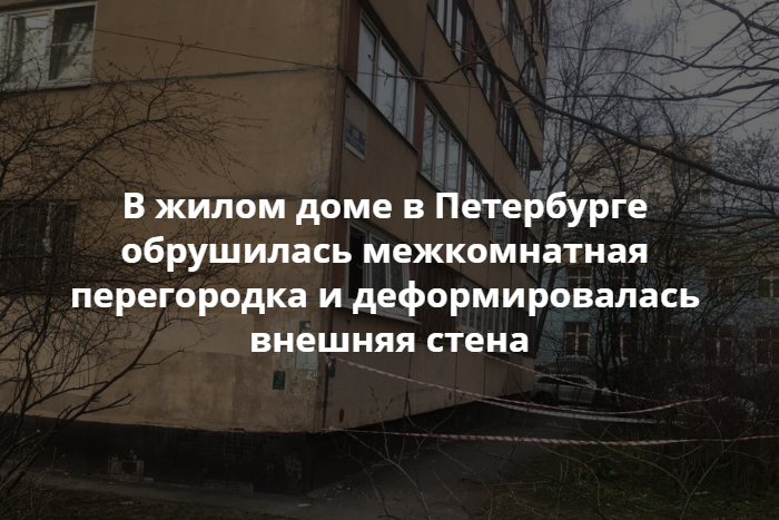 В жилом доме на Гражданском проспекте, 120 в Петербурге обрушилась межкомнатная перегородка, из-за чего внешняя стена здания деформировалась. Об этом сообщают очевидцы в социальных сетях и издание «Фонтанка».