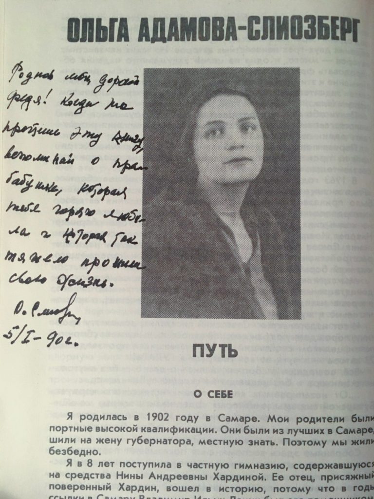 «Родной мой, дорогой Федя! Когда ты прочтешь эту книгу, вспоминай о прабабушке, которая тебя горячо любила и которая так тяжело прожила свою жизнь». Первое издание своего «Пути» в сборнике женских гулаговских мемуаров Ольга Адамова-Слиозберг надписала для правнука в январе 1990-го, когда Федору было шесть лет. Бабушка Оля проживет еще почти два годаФото: из личного архива Из книги «Путь»: