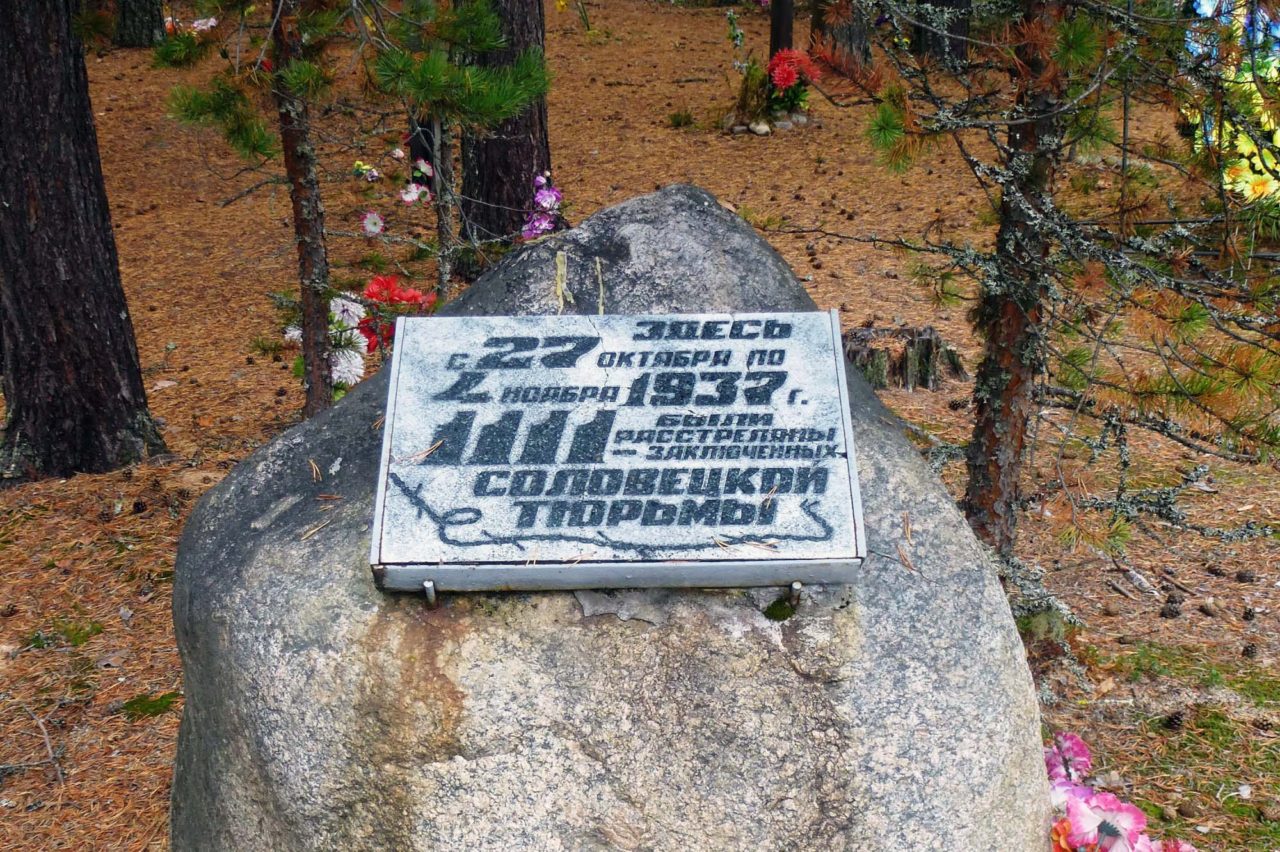 Памятный камень на месте массовых казней в урочище Сандармох вблизи г. Медвежьегорск, Республика КарелияФото: Semenov.m7/commons.wikimedia.org Карельский мшистый лес, полный звенящего металла. Таблички с именами. Крестики. Где-то под землей — прошедшие навылет пули. «Папа, наконец-то я тебя нашла», — прикнопленная на дерево записка чьей-то уже немолодой рукой… Сандармох. Первый приговор Юрий Дмитриев, откопавший гигантское братское захоронение, получил за «хранение части ружья времен Великой Отечественной войны». Ружье, которое наконец выстрелило…