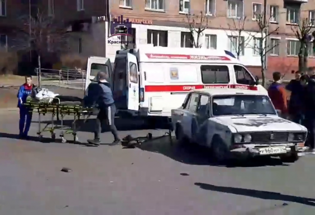 Женщину госпитализировали с места ДТП – видео опубликовали в группе «ЧП Красноярск» в соцсети «ВКонтакте».