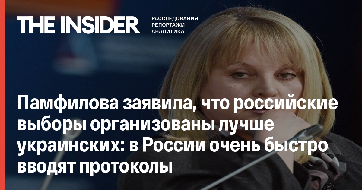 Памфилова заявила, что российские выборы организованы лучше украинских: в России очень быстро вводят протоколы