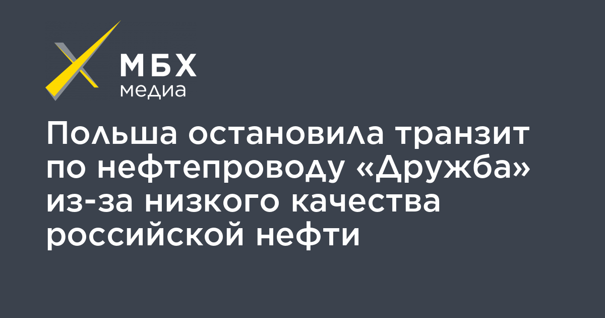 Польша остановила транзит по нефтепроводу «Дружба» из-за низкого качества российской нефти