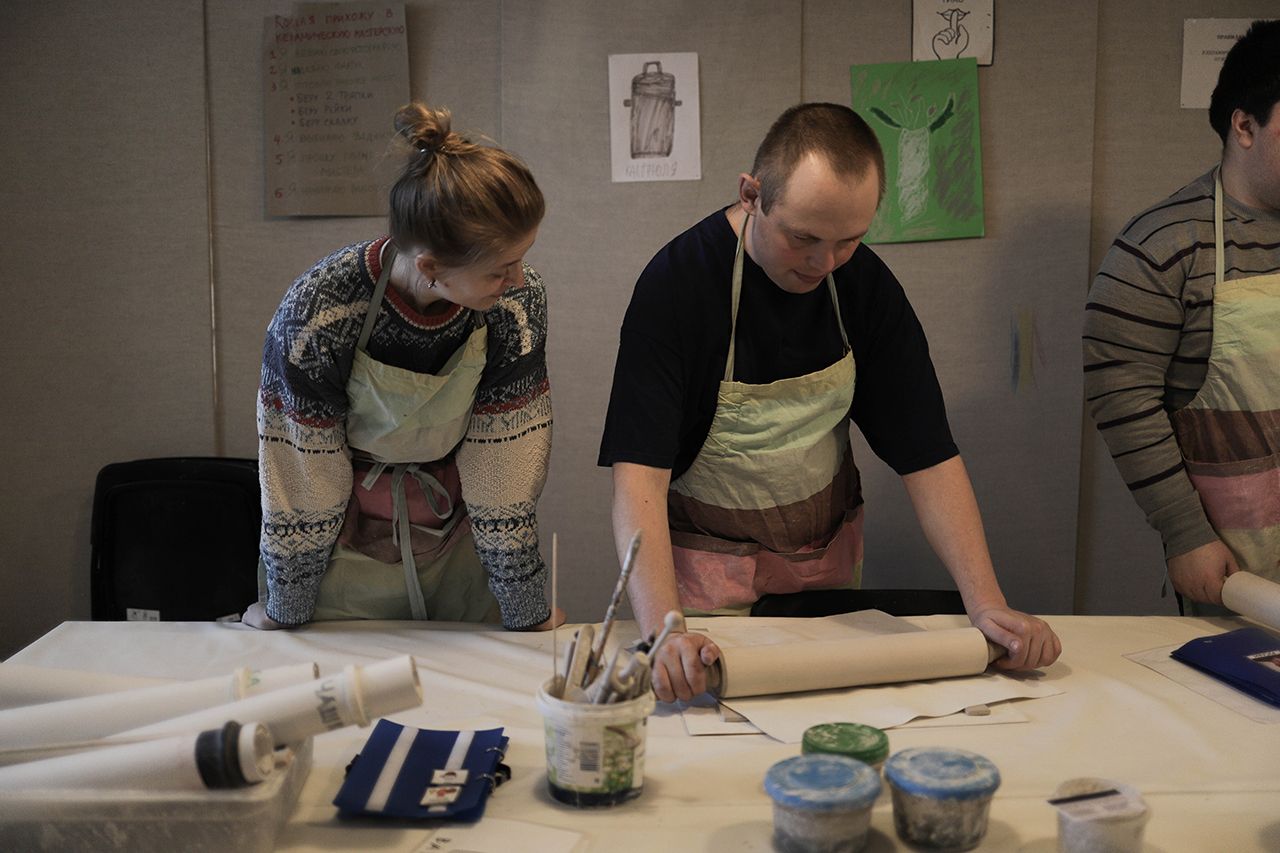 Фокусироваться на занятии больше двух или трех минут Антону тяжело — он то и дело выходит из мастерской или замирает в задумчивости, к процессу изготовления тарелки периодически подключается тьютор.