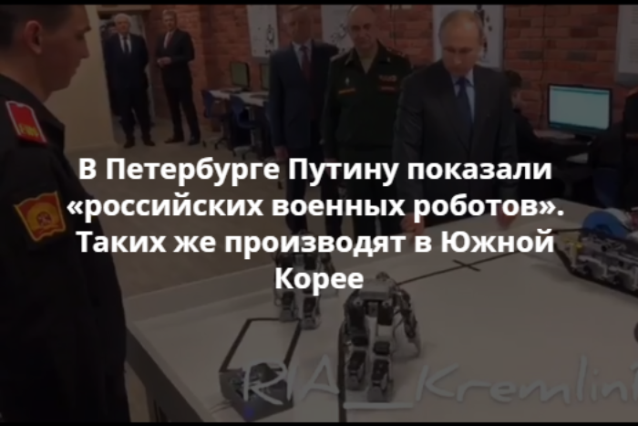 23 апреля президент России Владимир Путин посетил петербургское кадетское училище. Там ему показали роботов, оснащенных технологией распознавания голоса. Спустя день в соцсетях обратили внимание, что таких же роботов производят в Южной Корее и продают на eBay и Amazon.
