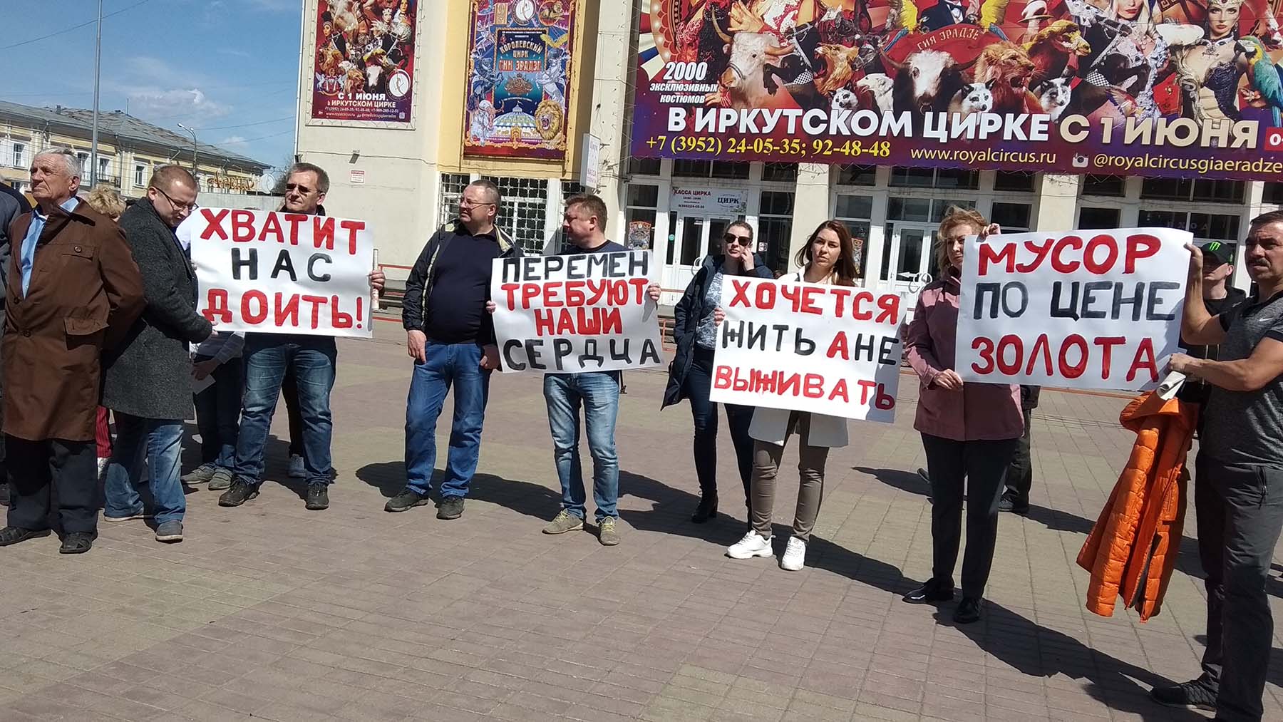 Жители Иркутска, Ангарска и Усолья-Сибирского 27 апреля вышли на митинги против высоких тарифов за вывоз твёрдых коммунальных отходов или так называемой "мусорной реформы". Участники акции протеста уверены, что изменения приведут к повышению цен в магазинах, поскольку предпринимателям придётся платить за вывоз мусора в 8–10 раз больше, чем раньше.