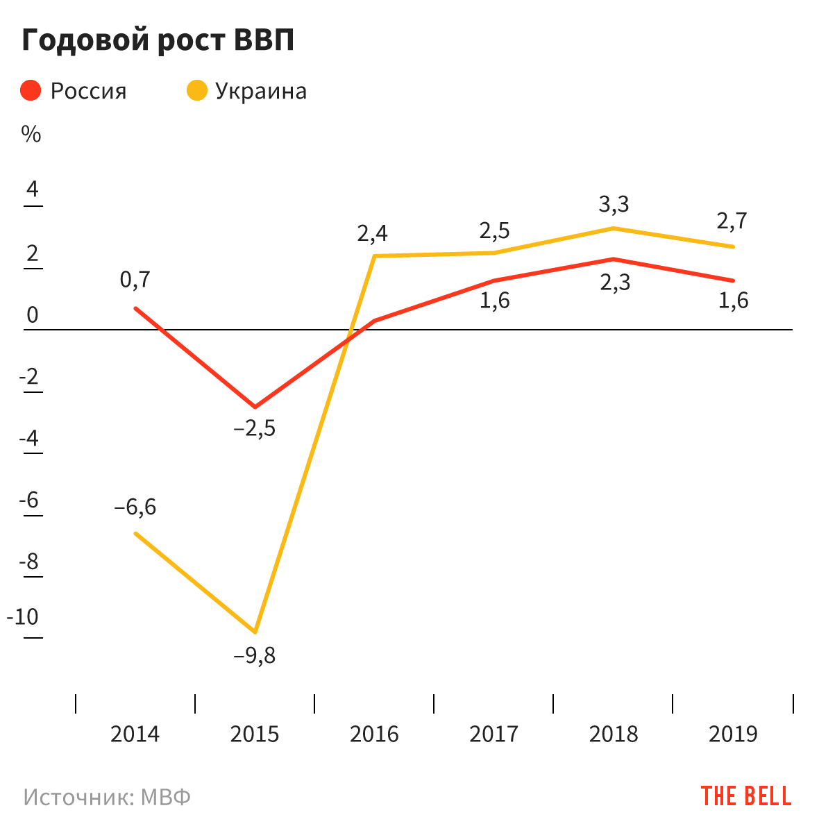 Россия намного богаче, но Украина в последние три года растет быстрее — и дело не только в низкой базе, но и в реформах