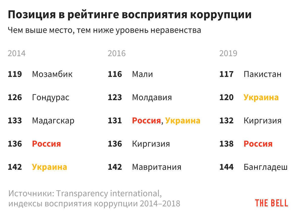 - Несмотря на это, и украинские, и западные эксперты называют коррупцию главной проблемой экономики. Но, в отличие от России, на Украине власть не может игнорировать антикоррупционные расследования — скандал вокруг коррупции в концерне «Укроборонпром» уронил рейтинг Порошенко перед президентскими выборами, и президент был вынужден объявить о реформе оборонных госзакупок.