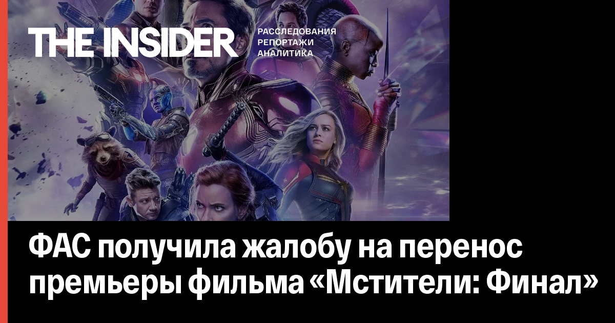 ФАС получила жалобу на перенос премьеры фильма «Мстители: Финал»