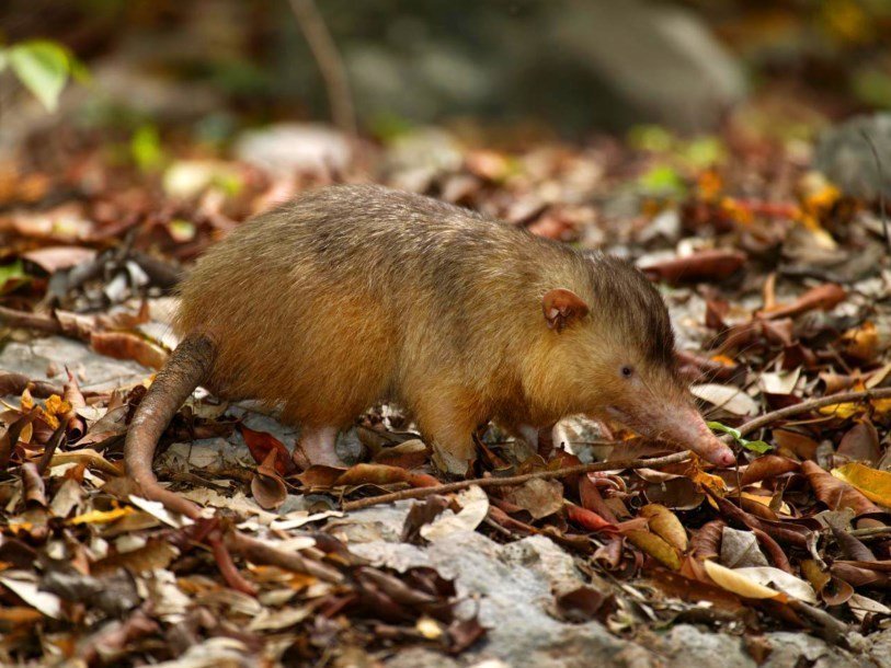 Эти очень редкие в наши дни животные внешне напоминают землероек, только значительно крупнее. Гаитянский щелезуб (Solenodon paradoxus) может быть длиной до 32 см (и еще до 25 см составляет его хвост) и весить до килограмма, кубинский щелезуб (Solenodon cubanus) чуть крупнее – длиной до 39 см, а вес может даже превышать килограмм. Днем щелезубы прячутся в норах, а ночью выходят на поиски пропитания. Они разыскивают в лесной подстилке насекомых, пауков, червей, улиток, лягушек или ящериц, также едят плоды и листья растений. Щелезубов включают в отряд насекомоядных.