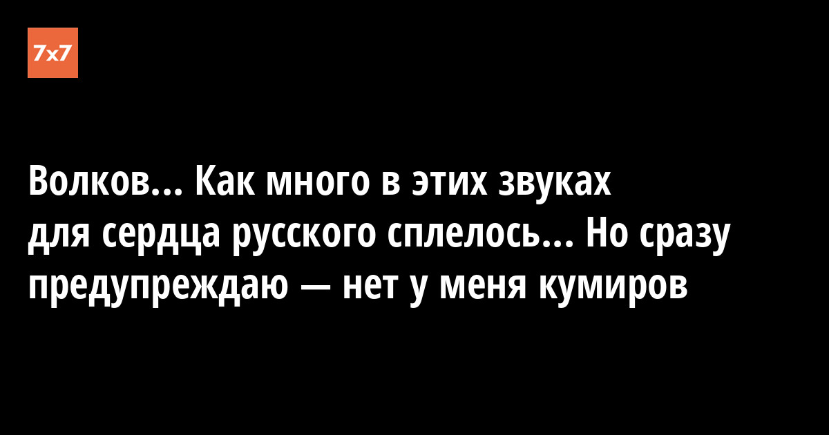 Волков... Как много в этих звуках для сердца русского сплелось... Но сразу предупреждаю — нет у меня кумиров