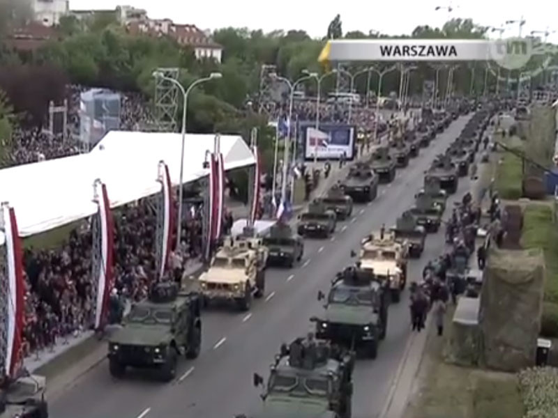 Масштабный парад вооруженных сил по случаю празднования 20-й годовщины вступления Польши в НАТО, 15-летия членства республики в ЕС, а также Дня конституции 3 мая прошел в польской столице, передает ТАСС.